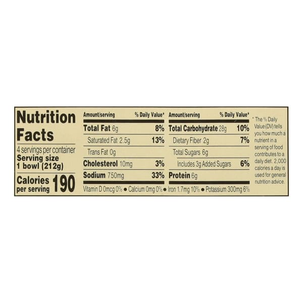 Heating Directions: Microwave: 1. Remove metal lid under plastic cover; replace plastic cover. 2. Microwave on high 30 seconds or until hot. 3.Let stand 1 minute in microwave. Remove from microwave by holding container by sides. Do not lift by plastic cover. Stir before serving. Handle carefully, it’s hot! Caution: Contents are hot after microwaving. Remove carefully- Do not lift by plastic cover.