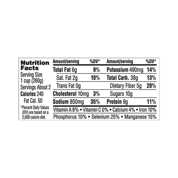 Tomatoes (tomato Puree, Water), Water, Enriched Wheat Flour (wheat Flour, Malted Barley Flour, Niacin, Reduced Iron, Thiamine Mononitrate [vitamin B1], Riboflavin [vitamin B2], Folic Acid), Cooked Italian Sausage (pork, Seasoning [spices, Salt, Corn Syrup Solids, Paprika, Garlic Powder, Caramel Color, Flavoring, Disodium Inosinate, Disodium Guanylate, Citric Acid], Water, Salt, Sodium Tripolyphosphate), High Fructose Corn Syrup, Crackermeal (enriched Wheat Flour [bleached Wheat Flour, Niacin, Reduced Iron, Thiamine Mononitrate, Riboflavin, Folic Acid], May Contain Guar Gum), Less Than 2% Of: Salt, Textured Vegetable Protein (soy Protein Concentrate, Caramel Color), Modified Corn Starch, Dehydrated Onion, Carrots, Vital Wheat Gluten, Dehydrated Garlic, Caramel Color, Spices, Corn Syrup Solids, Dextrose, Paprika, Soybean Oil.