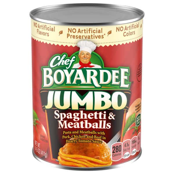 • Delicious and convenient, Chef Boyardee Jumbo Spaghetti and Meatballs has the real ingredients and rich flavor that families know and love
