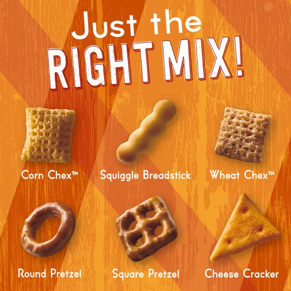 • CHEX MIX: Snack Mix loaded with fun, flavorful shapes of Chex, pretzels, mini breadsticks and cheese crackers