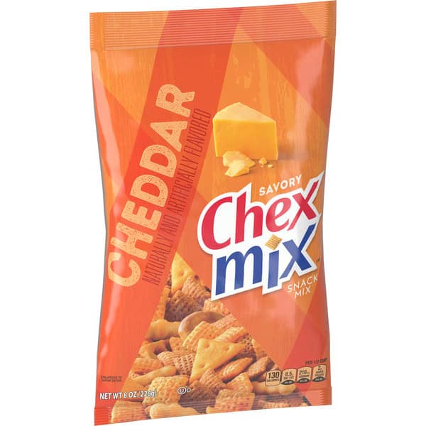 • CONTAINS: One 8 oz bag of Chex Mix Cheddar Savory Snack Mix