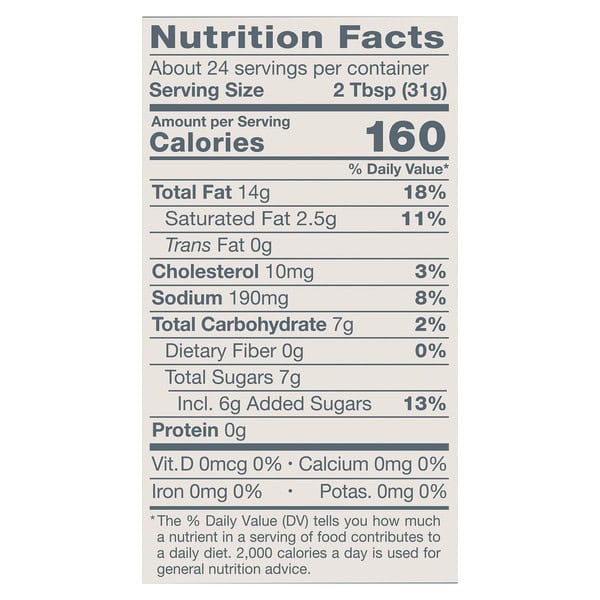 Soybean Oil, Sugar, Bbq Sauce [tomato Paste, Corn Syrup, Vinegar, Natural Hickory Smoke Flavor, Caramel (color), Spices, Garlic*, Onion*, Natural Flavor, Oleoresin Paprika], Water, Mustard (distilled Vinegar, Water, Mustard Seed, Salt, Turmeric, Paprika, Spice, Garlic*), Distilled Vinegar, Egg Yolk, Salt, Cider Vinegar, Lemon Juice Concentrate, Mustard Flour, Xanthan Gum, Natural Flavor, Garlic*, Calcium Disodium Edta Added To Protect Flavor, *dehydrated