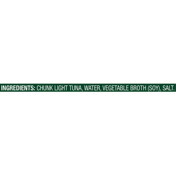 Chunk Light Tuna, Water, Vegetable Broth (contains Soy), Salt.