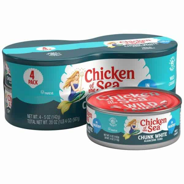 Chicken of the Sea chunk white albacore tuna in water is made with premium albacore tuna, perfectly seasoned with salt and packed in water for the purest, cleanest tuna flavor. It is rich in protein and features heart-healthy omegas, and vitamin D with very little fat and carbohydrates—perfect for keto and Mediterranean diets.