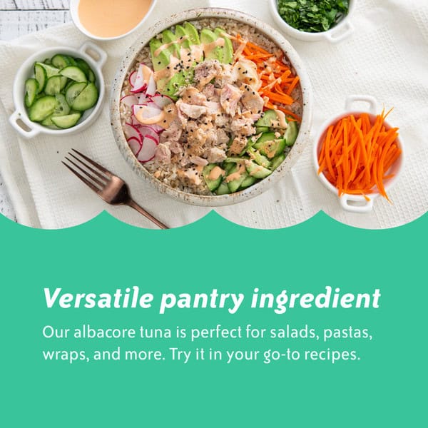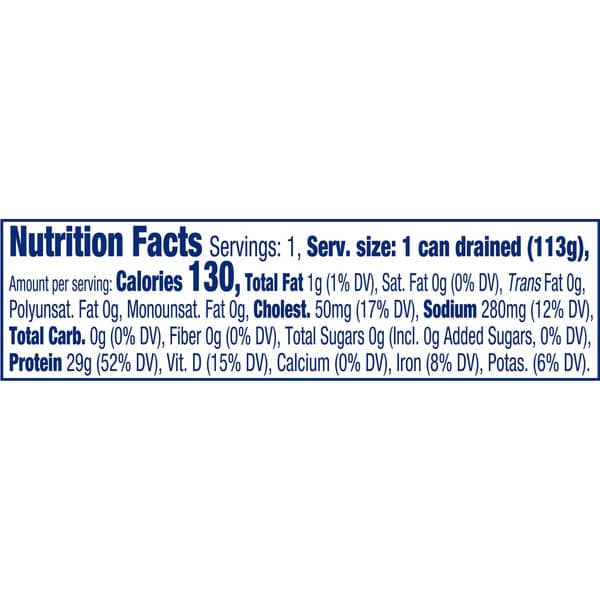 Chicken of the Sea solid white albacore tuna in water is made with premium albacore tuna, perfectly seasoned with salt and packed in water for a pure, clean, mild flavor. It is high in protein and features heart-healthy omegas, and vitamin D with very little fat and no carbohydrates—perfect for keto and Mediterranean diets.