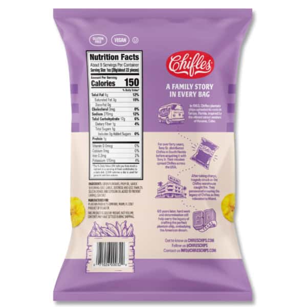 All natural. Gluten free. 0 grams trans fat. Crunch, crunch, crunch – a melt in your mouth taste and you have just discovered the unique flavor of a green plantain chip. Their name is Chifles (pronounced chief-les). The plantain is a fruit that is imported from the same tropical countries as bananas. They are similar in appearance, but a plantain is larger and is eaten either green or ripe only when cooked. Certified WBENC: Women’s Business Enterprise. Web Address: www.chifleschips.com.