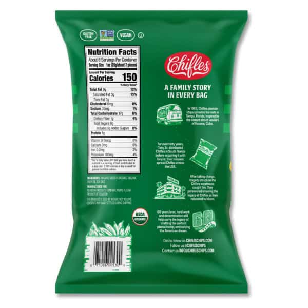A family story in every bag. Chifles (Pronounced Chief-les) was established in Tampa, Florida in 1963. The founding family was inspired by vendors who sold plantain chips on the streets of Havana, Cuba. At the time, not many people were looking for gluten-free, vegan snacks but it was no secret that plantain chips were delicious. Shortly after arriving from Cuba, tony Rivas sr. Began distributing Chifles and soon became the biggest distributor in Florida. Tony Jr. Followed in his dad’s footsteps. After purchasing the company, they teamed up to introduce Chifles to stores across the USA. More than 50 years later, the Rivas family continues the legacy of creating the perfect plantain chip. This bag is a testament to hard work and dedication in pursuit of the American dream. We hope you enjoy eating them as much as we loved crafting them. – The Rivas family. This product is sold by weight, not volume. Contents may have settled during shipping.