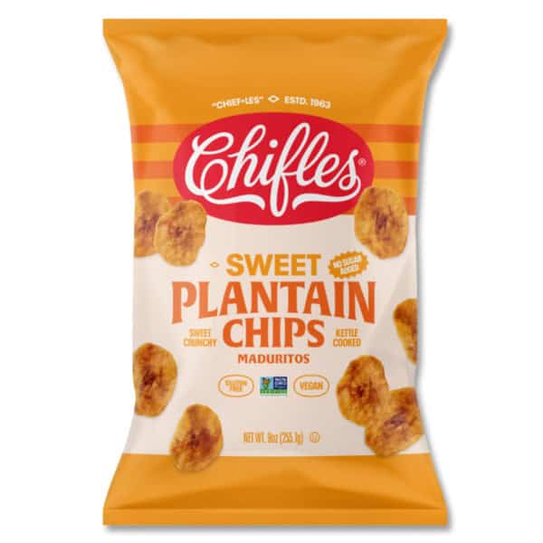 Per 28 g Serving: 140 calories; 2 g sat fat (10% DV); 0 mg sodium (0% DV); 5 g sugars. Gluten free. Certified kosher. Vegan. No trans fat. No sugar added. Cholesterol Free. At Chifles, we have a passion for turning traditional Latin treats into tasty, wholesome snacks. More than a half-century after our founders began refining their recipe for the perfect plantain chip, we still place the highest value on quality. By cooking a plantain when it’s done, we are able to capture its natural sweetness without adding sugar, making it a deliciously crunchy chip you can have at any time. This product is sold by weight, not volume. Contents may have settled during shipping. www.chifleschips.com. Connect with us at: Facebook: facebook.com/chifleschips. Twitter: (at)chifleschips. Instagram: (at)chifleschips. Visit us at chifleschips.com. Now available online at www.chifleships.com. Made in Ecuador.