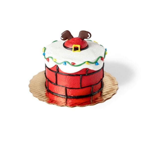 Our Chimney Mini Cake comes with a sweet challenge: Help poor Santa out of the chimney. But this isn’t any ordinary chimney—it’s made with four layers of 5-inch vanilla or chocolate cake filled with buttercream. To free him, your guests will have to maneuver through even more buttercream, including red brick accents and colorful holiday lights. They’ll certainly have their job cut out for them. Fun and festive, this cake is perfect for children’s holiday parties and will add joy to any dessert table.