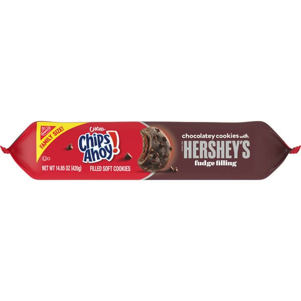 • One 14.85 oz family size pack of CHIPS AHOY! Chewy Chocolatey Cookies with Hershey’s Fudge Filling.