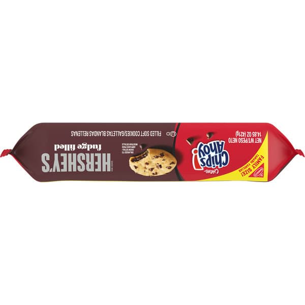 CHIPS AHOY! Chewy Hershey’s Fudge Filled Soft Chocolate Chip Cookies pair your favorite chewy cookies with another fan favorite: Hershey’s chocolate. These soft chocolate chip cookies are baked to perfection with Hershey’s chocolate fudge filling for a sweet treat everyone can enjoy. Classic round cookies offer easy sweet snacking anytime. Resealable pack keeps CHIPS AHOY! cookies fresh and ready to share.