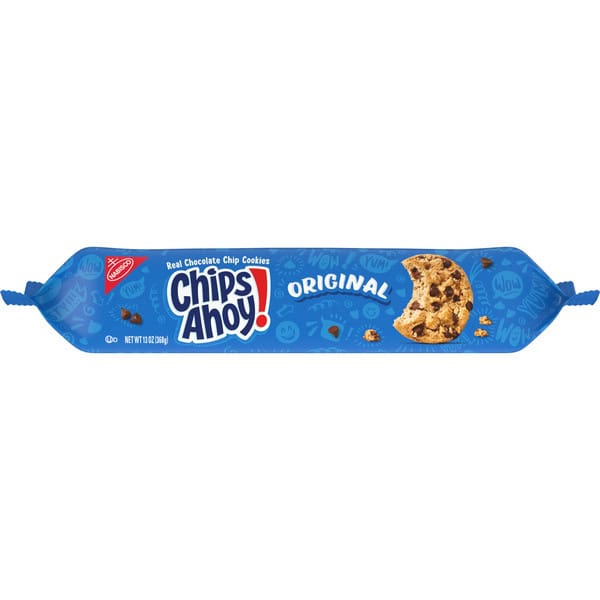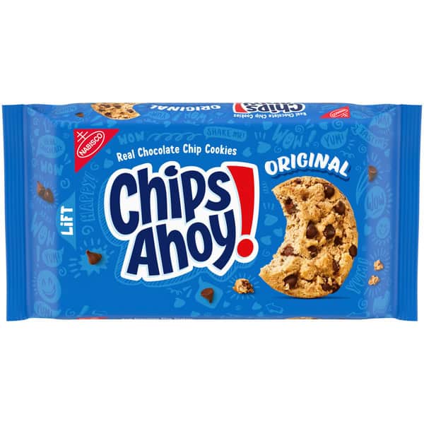 CHIPS AHOY! Original Chocolate Chip Cookies are the CHIPS AHOY! cookies you know and love, baked to have the perfect amount of crunch. These crispy chocolate chip cookies are loaded with lots of real chocolate chips. Make lunches at school or work more exciting by including these classic cookies, or grab a pack to prep for a holiday party or use as ice cream toppers or to make ice cream sandwiches or desserts. The resealable pack with lift tab makes these snack cookies easy to open and close.