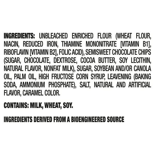 Unbleached Enriched Flour (wheat Flour, Niacin, Reduced Iron, Thiamine Mononitrate {vitamin B1}, Riboflavin {vitamin B2}, Folic Acid), Semisweet Chocolate Chips (sugar, Chocolate, Cocoa Butter, Dextrose, Soy Lecithin), Sugar, Soybean Oil, Partially Hydrogenated Cottonseed Oil, High Fructose Corn Syrup, Leavening (baking Soda, Ammonium Phosphate), Salt, Whey (from Milk), Natural And Artificial Flavor, Caramel Color.