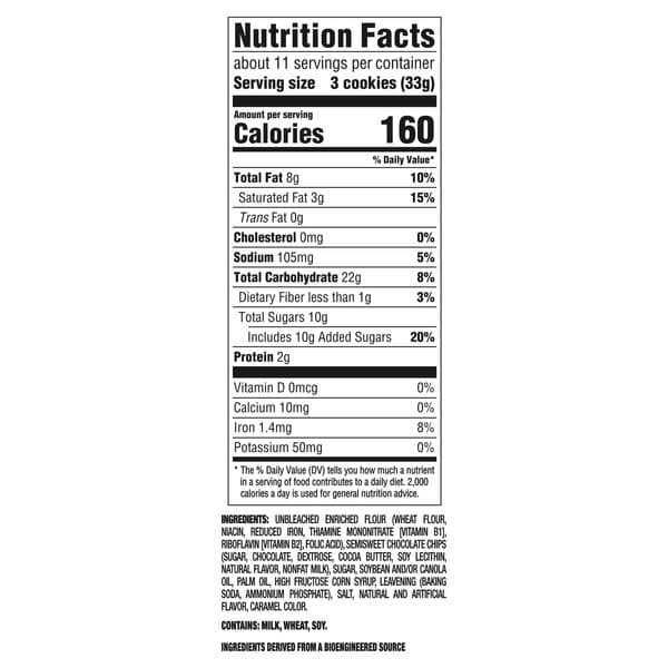 • Resealable pack keeps chocolate chip cookies fresh and ready to share with friends and family.