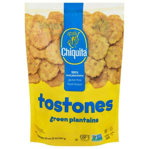 100% Real plantains. Fresh frozen. Did you know? Tostones, also known as patacones, are green plantains peeled, cut, mashed and fried to perfection. They’re a great side dish that can be enjoyed with many toppings, such as shredded beef, ceviche, guacamole or simply with a few drops of line and salt. Recyclable.