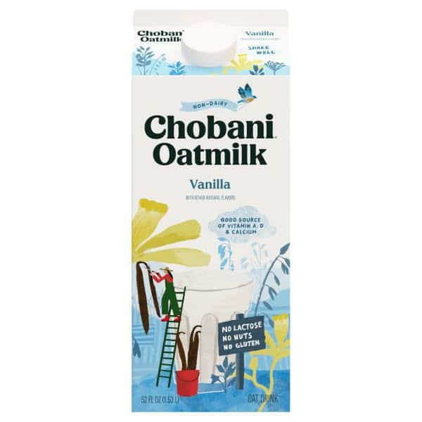 Plant-based. Oat milk. Drink it. Mix it. Pour it. Stir it. Oats good for you – and the planet. Grown with Less Water: Oats require less water to grow than almonds. Improves Soil Health: Oats are a cover crop, enriching the soil where they grow and protecting it from erosion. Diversifies Our Diets: While agricultural production is primarily corn, rice, and wheat, oats bring a welcome diversity to our diet. Creamy Like Milk: Oats give a rich and creamy texture like dairy milk – without the dairy. Packaged sustainably: Chobani oat is packaged in a recyclable Sustainable Forestry Initiative – certified pulp carton. SFI: Certified Chain of Custody. Promoting sustainable forestry. www.sfiprogram.org.