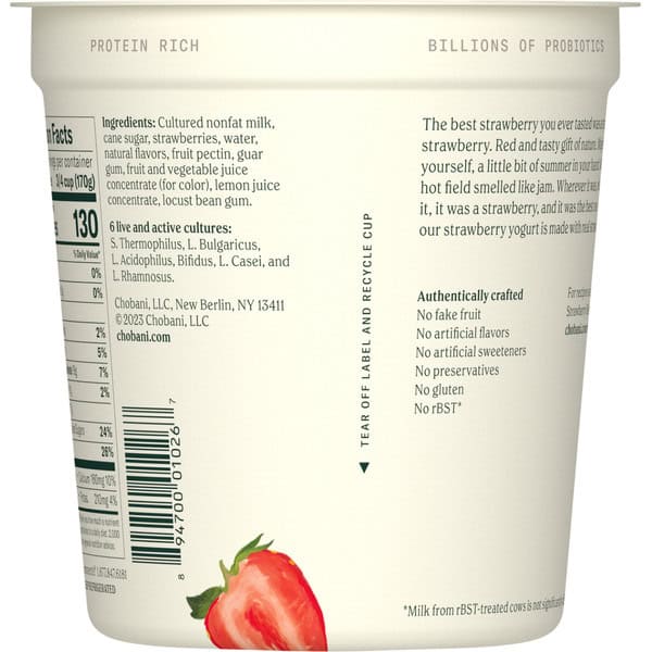 Cultured Nonfat Milk, Cane Sugar, Strawberries, Water, Natural Flavors, Fruit Pectin, Guar Gum, Fruit And Vegetable Juice Concentrate (for Color), Lemon Juice Concentrate, Locust Bean Gum