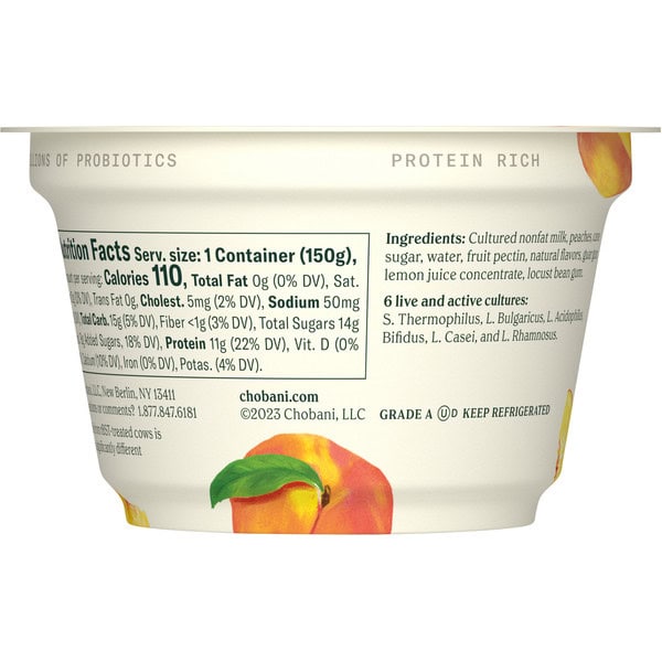 Cultured Nonfat Milk, Peaches, Cane Sugar, Water, Fruit Pectin, Natural Flavors, Guar Gum, Lemon Juice Concentrate, Locust Bean Gum