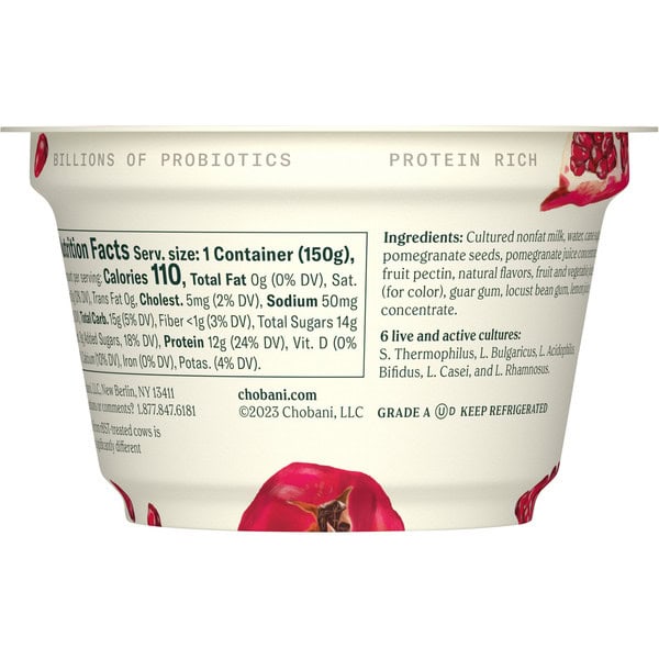 Cultured Nonfat Milk, Water, Cane Sugar, Pomegranate Seeds, Pomegranate Juice Concentrate, Fruit Pectin, Natural Flavors, Fruit And Vegetable Juice (for Color), Guar Gum, Locust Bean Gum, Lemon Juice Concentrate