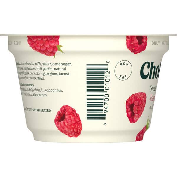 Cultured Nonfat Milk, Water, Cane Sugar, Raspberry Puree, Raspberries, Fruit Pectin, Natural Flavors, Vegetable Juice (for Color), Guar Gum, Locust Bean Gum, Lemon Juice Concentrate