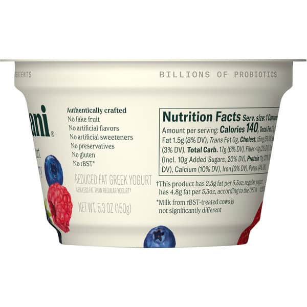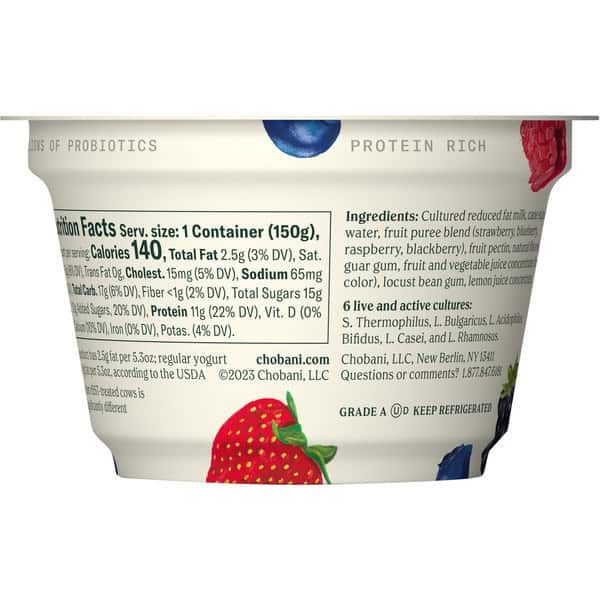 Cultured Reduced Fat Milk, Cane Sugar, Water, Fruit Puree Blend (strawberry, Blueberry, Raspberry, Blackberry), Fruit Pectin, Natural Flavors, Guar Gum, Fruit And Vegetable Juice Concentrate (for Color), Locust Bean Gum, Lemon Juice Concentrate