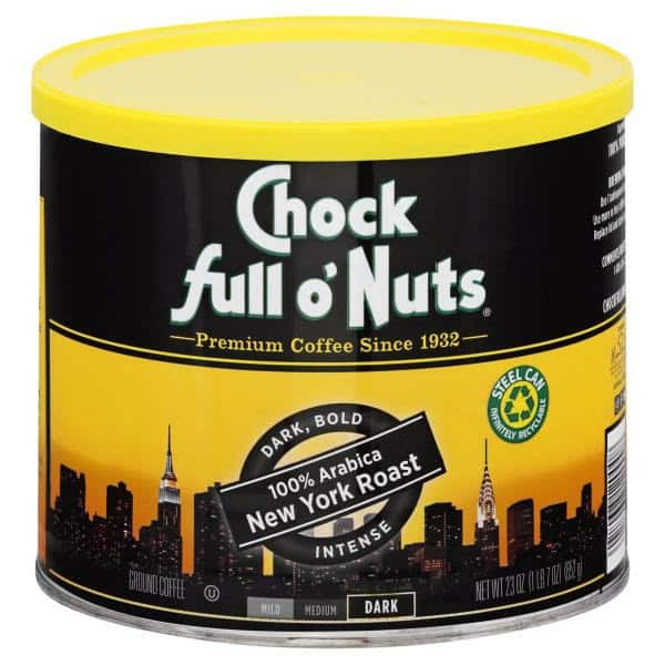100% Arabica New York Roast. Premium coffee since 1932. chockfullonuts.com. Instagram. Facebook. Twitter. Comments/questions call 1-888-246-2498. Steel can infinitely recyclable. An infinitely Better Package: Steel: We think it’s infinitely better. Unlike plastic coffee tubs, steel can be recycled an infinite number of times and is the most recycled material on the planet. Not only is steel environmentally sustainable, its serves as a superior barrier to lock in fresh taste and prevent staleness. Think of it as a bank vault for fresh coffee. Of course, recycling only happen with your help. All you have to do it toss it in the bin. Don’t worry about checking for a recycling number – there’s not one. It’s not needed. Unlike plastic, all steel is recyclable. Everywhere. Forever.