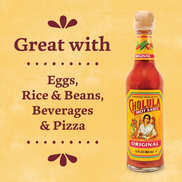 From our distinctive wooden cap to the original recipe hot sauce inside, every bottle of Cholula is a celebration of great food, flavor, and our Mexican roots. Each drop of Cholula delivers balanced heat and layers of flavor. Whether you’re shaking Cholula on your tacos or adding a few drops to a classic breakfast, we’ll keep you coming back saying “More, por favor.” Imported from Mexico.