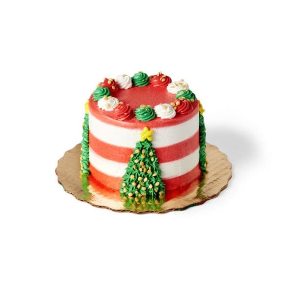 When it comes to holiday desserts, our Christmas Tree Mini Cake shines. It’s made with four layers of 5-inch vanilla or chocolate cake filled with luscious buttercream. Decorated in red and white frosting, the cake is wreathed with festive buttercream rosettes. But the most impressive feature is the hand-piped Christmas trees decorated with candy accents. Bright and cheerful, this cake is perfect for tree-trimming parties and holiday celebrations.