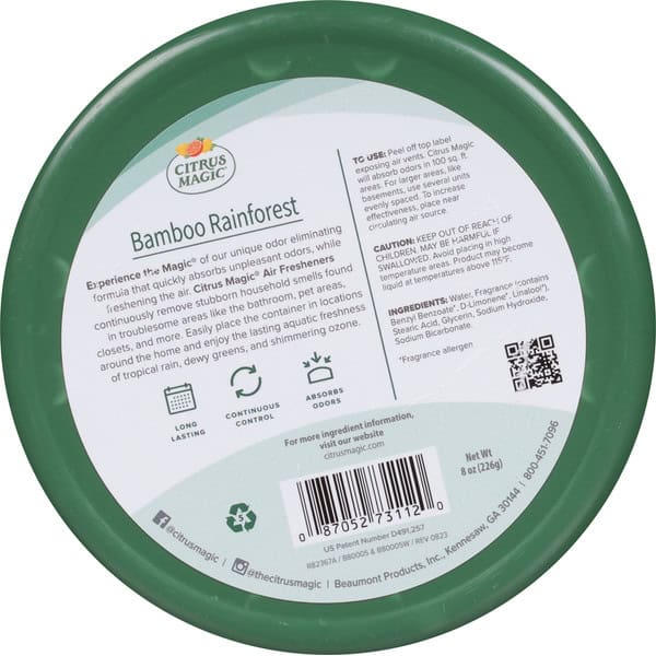 To Use: Peel off top label exposing air vents. Citrus Magic will absorb odors in 100 sq. ft. areas. For larger areas, like basements, use several units evenly spaced. To increase effectiveness, place near circulating air source.
