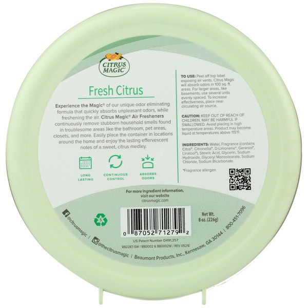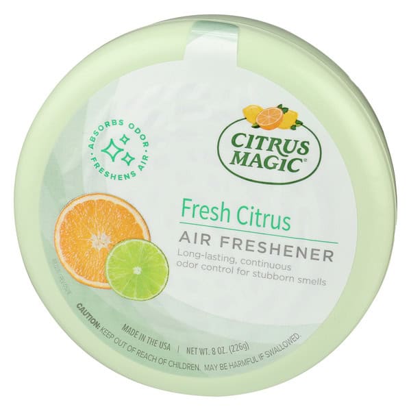 Citrus Magic Odor Absorbing Solid Air Freshener, Fresh Citrus, 8-Ounce – Experience the Magic of our unique odor-eliminating formula that quickly absorbs unpleasant odors, while freshening the air. Citrus Magic Air Fresheners continuous, long-lasting 24/7 action removes stubborn household smells found in troublesome areas like the bathroom, pet areas, closets, and more. Easily place the container in locations around the home and enjoy the lasting delectable, clean smells. Best of all the product is safe and free from a lot of harsh chemicals like parabens, phthalates, formaldehyde, and more. Enjoy the peace of mind knowing that you have continuous odor relief from smells like smoke, cooking odors, pets, and mildew. It’s like poof and odors have vanished! Just like magic.