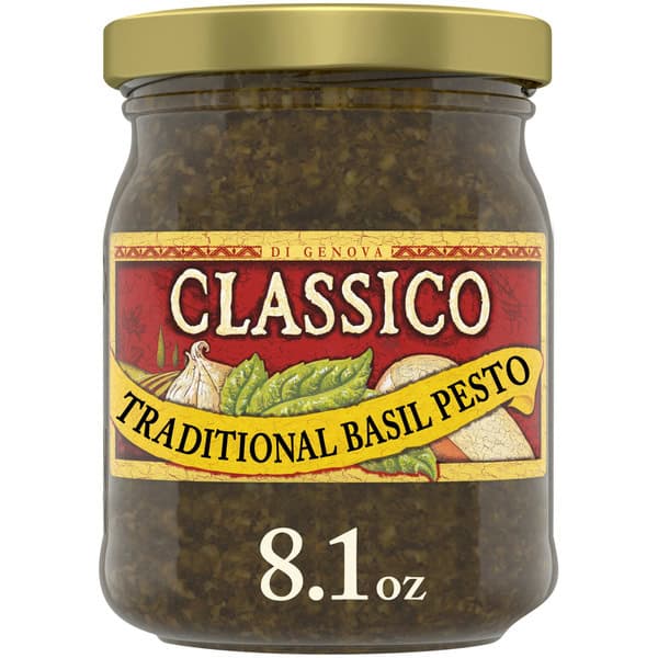 • One 8.1 oz jar of Classico Signature Recipes Traditional Basil Pesto Sauce & Spread