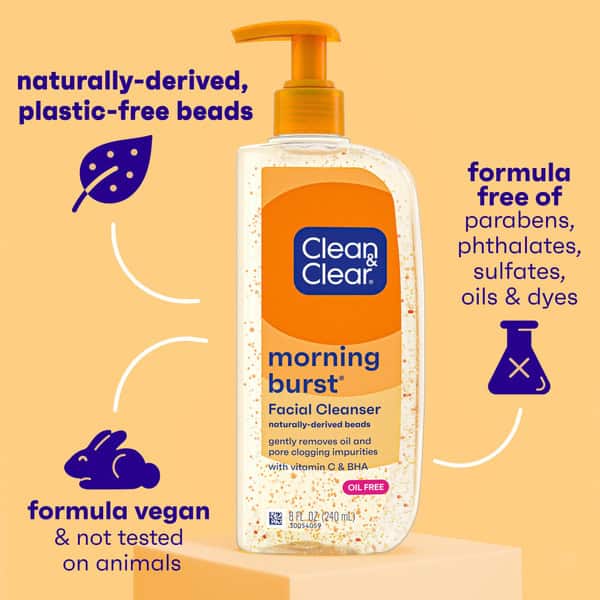• Clean & Clear Oil-Free Morning Burst Nourishing Facial Cleanser with Vitamin C & BHA