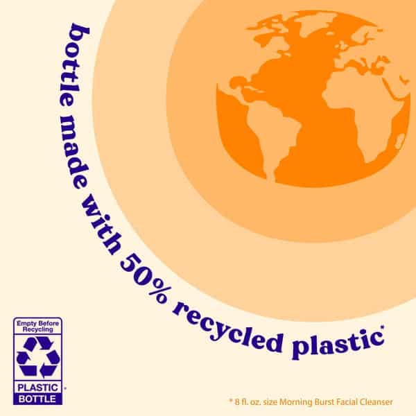 Clean & Clear Oil-Free Morning Burst Facial Cleanser with Vitamin C and BHA gently cleanses, exfoliates, and nourishes facial skin. Wake up with this nourishing facial cleanser that gently removes oil and pore clogging impurities. Its oil-free formula is made with Vitamin C and BHA, and designed with MoodScentz technology, connecting the power of scent and mood to delight your senses. The gentle, yet effective vegan formula of the nourishing facial cleanser is free of parabens, phthalates, sulfates, oils, and dyes and is not tested on animals. Suitable for everyday use, this foaming facial cleanser can be used as part of your daily morning skincare routine and is ideal for normal skin. To use, wet face, gently massage your face with the cleanser, and rinse thoroughly. Nourishing Morning Burst Facial Cleanser from Clean & Clear in recyclable bottle made from 50% recycled plastic.