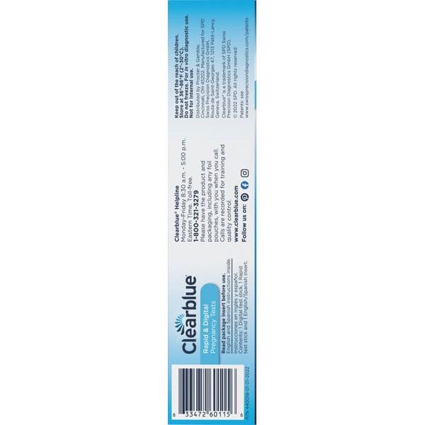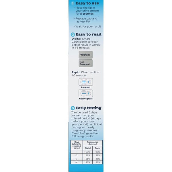 • One Clearblue Digital Pregnancy Test with Smart Countdown, and one Clearblue Rapid Detection Pregnancy Test included