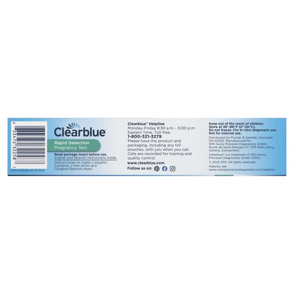 • RAPID DETECTION PREGNANCY TEST: Includes two (w) Clearblue Rapid Detection Home Pregnancy Tests that can give you a result as fast as 1 minute[1]