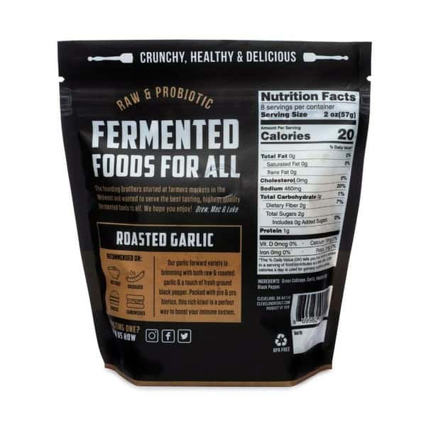 A gluten free product. Vegan. Non GMO Project verified. nongmoproject.org. Live and raw probiotics. Fermented foods for all. Does not contain preservatives. Crunchy, healthy & delicious. Raw & probiotic. Fermented foods for all. The founding brothers started at farmers markets in the Midwest and wanted to serve the best tasting, highest quality fermented foods to all. We hope you enjoy! – Drew, Mac & Luke. clevelandkraut.com. Show Us How You Gnar-nish: Twitter; Facebook; Twitter (at)clekraut. BPA free. Product of USA.