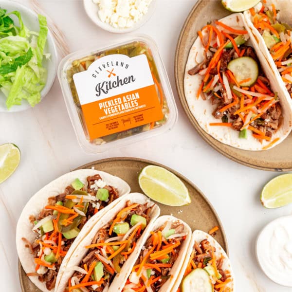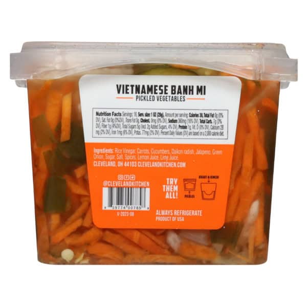 Chef-crafted with flavor and freshness, Cleveland Kitchen’s Pickled Asian Vegetables offer a unique taste profile and versatility. These pickled vegetables are perfect for enhancing salads, sandwiches such as Bahn Mi, tacos, and a variety of other dishes. Their vibrant flavors and crisp textures are sure to delight food enthusiasts and culinary adventurers alike. Take a flavor adventure with these lightly fermented delights!