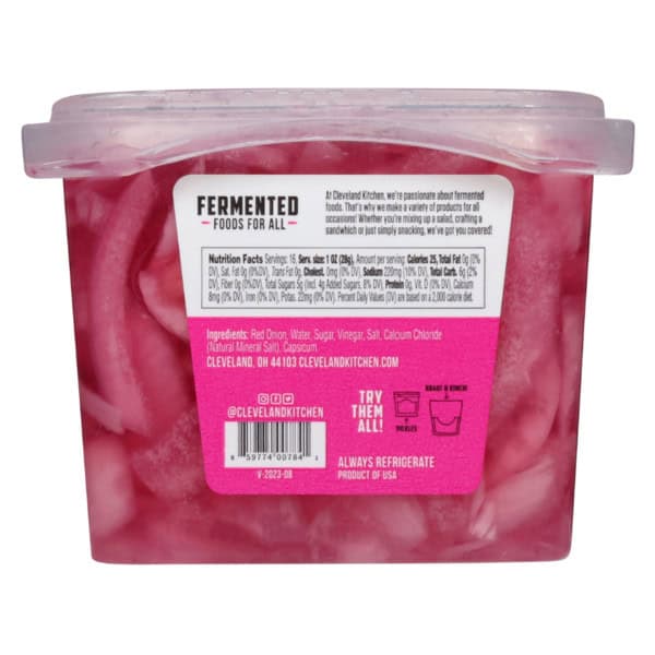 Chef-Crafted with attention to clean flavor and restaurant quality, Cleveland Kitchen’s Pickled Red Onions offer up a unique taste profile and versatility. These pickled vegetables are perfect for turning your next salad, sandwich, taco, or dish into a chef quality indulgence. Their vibrant flavors and crisp texture are sure to delight food enthusiasts and culinary adventurers alike.