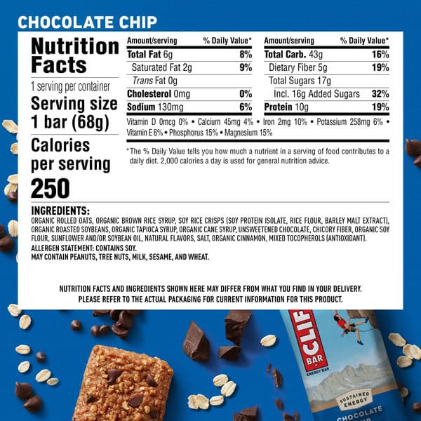 • CLASSIC CHOCOLATE CHIP FLAVOR: Includes one Chocolate Chip energy bar made with sustainably sourced chocolate for the taste of this classic favorite on-the-go (packaging may vary).
