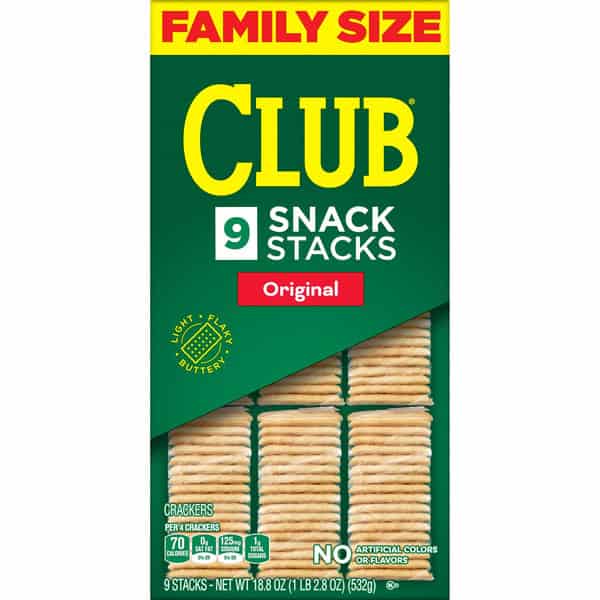 • Crisp crackers with a classic, buttery taste perfect for loading with toppings or eating a Stack on the go; A Club is all you need