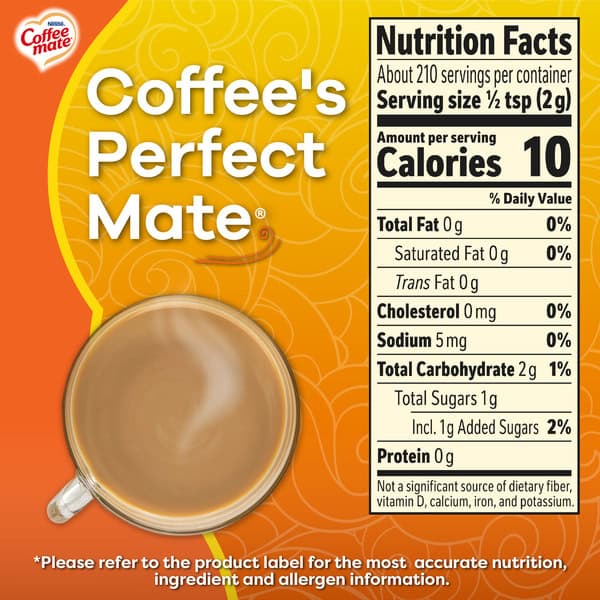 • Coffee mate powdered creamer makes it easy to pour, stir and enjoy; ready in an instant