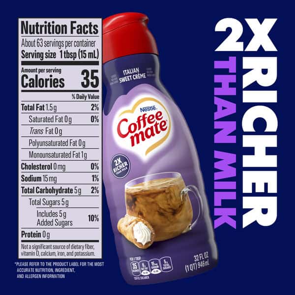 • MVP OF CREAMERS: Whoever said they didn’t like coffee creamer clearly hasn’t tried Coffee mate. Make your coffee goals a reality with our Italian Sweet Crème flavored creamer