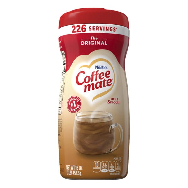 Nestle Coffee mate Original Powdered Coffee Creamer is an ideal way to create a delicious cup of coffee perfection. Smooth and rich, this original creamer delivers classic flavor that transforms every drinking experience. Original Coffee mate creamer is lactose free, gluten free and non dairy. Coffee creamer powder makes it easy to add the right amount of flavor every time, letting you easily transform your coffee into warm deliciousness. Whether it’s your morning cup or an afternoon pick-me-up, this flavored coffee creamer wakes up your coffee. Store Coffee mate powdered creamer in a cool, dry place.