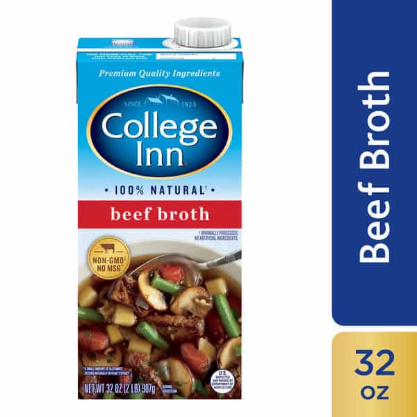 COLLEGE INN Beef Broth is made with the highest quality ingredients, giving this soup base the rich flavor that elevates any homemade meal. This fat free broth is Non-GMO* and features no artificial ingredients or added MSG** for a beef broth you and your family can trust. Enjoy the delicious taste of rich, savory beef, farm-grown vegetables and a blend of seasonings in this COLLEGE INN beef broth. From savory beef soup to vegetable stew and other family favorites, use this soup broth to create homemade meals that bring people together. Each carton of COLLEGE INN beef broth features a twist off, resealable top, so you can easily reuse this soup base for your next home cooked meal. Keep unused beef broth in the refrigerator after opening. Make every dish even more delicious with COLLEGE INN Beef Broth. *Ingredients of the types used in this product are not genetically modified. **A small amount of glutamate occurs naturally in yeast extract.