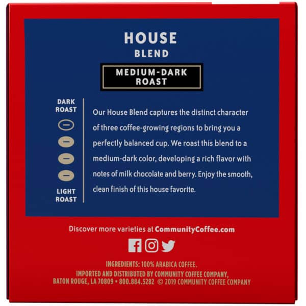 Our House Blend captures the distinct character of three coffee-growing regions to bring you a perfectly balanced cup. We roast this blend to a medium-dark color, developing a rich flavor with notes of milk chocolate and berry. Enjoy the smooth, clean finish of this house favorite.