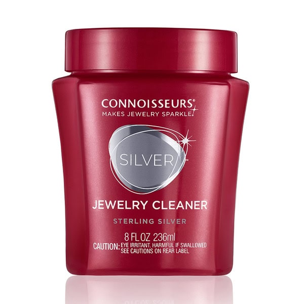 Connoisseurs Silver Jewelry Cleaner is a fast, convenient way to clean sterling silver jewelry. Instantly clean, remove tarnish and restore the shine and brilliance to sterling silver jewelry in just 10 seconds. Sterling Silver jewelry will tarnish when exposed to air. Skin oils, perfumes and hairspray can speed up the tarnishing process. To keep your silver jewelry looking its best regular cleaning is recommended. Not for use on gemstones, painted or antiqued or plated pieces and any other type of metal. Ammonia-Free. 8 Fl. Oz. Dip tray included.