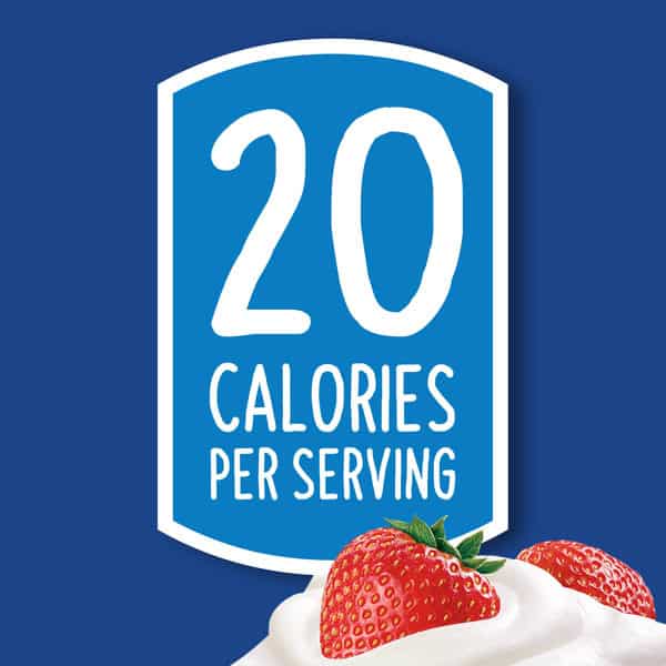 Cool and creamy, delicious and dreamy, Cool Whip Reduced Fat Whipped Topping is the dollop that makes desserts extra special. With 33% less fat than the leading whipped topping, our Reduced Fat Cool Whip is the same tasty delight you love, just with less fat. So light and fluffy, it adds a cloud of perfection to everything from pies to ice cream sundaes. Cool Whip is a one-of-a-kind creamy whipped topping. Consider it your guilt-free go-to. Add to your favorite dessert creations like banana pudding, strawberry shortcakes or parfaits. Put the playful topping on your hot chocolate and milkshakes, use as a dip for fresh fruit and more. The possibilities are endless! Each serving contains 20 calories and 1 gram of fat. Keep our frozen whipped topping in the freezer until ready to thaw and enjoy. Our 8-ounce tub of Cool Whip Reduced Fat Whipped Topping stays Fridge Fresh for two weeks. Just dollop and enjoy!