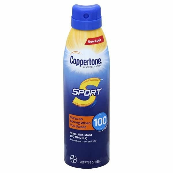 • Coppertone Sport SPF 100 sunscreen spray is water resistant (80 minutes), and stays on strong when you sweat