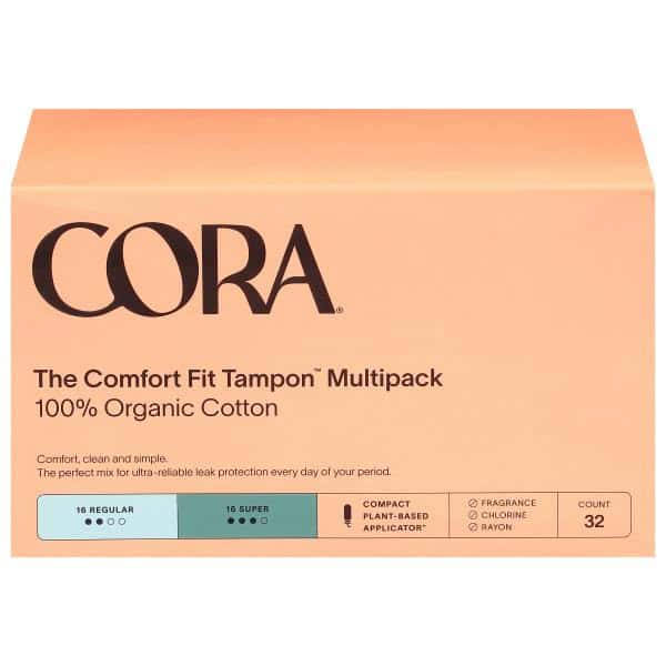 Applicator. At Cora, we believe you and your body are naturally powerful. That’s why we: 01 nurture the inherent power of girls worldwide by providing period pads and health education to those in need; 02 use organic ingredients whenever possible; 03 design products that are naturally good for our bodies and also good at what they do; 04 spread knowledge that helps us understand our bodies better; 05 champion issues that affect women worldwide; 06 and promise that with every Cora purchase you make, we will support a girl stepping boldly into the promise of her future. Good for the body. Our tampons are made with certified organic cotton, because what you put in your body matters. Fearless Fit: Expands to fit your body for total comfort and leak protection. Compact Applicator: Sleek, BPA-free compact applicator for smoother insertion. Goods for the body. Made Without: pesticides; dioxins; fragrance; chlorine. Find Your Flow: Light: Less than 6 g fluid. Regular: 6-9 g fluid. Super: 9-12 g fluid. Super Plus: 12-15 g fluid. Made Without: pesticides; dioxins; fragrance; chlorine. Recycle box. The Power of Your Purchase: Millions of girls around the world lack access to safe and healthy period care. That’s why your Cora purchase provides pads, health education and health resources to girls globally, so they can stay in school and boldly step into their futures. 10 million pads given – and counting. Certified B Corporation.