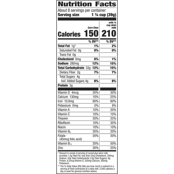 • CONTAINS: One cardboard box of crunchy Corn Chex Cereal, Gluten Free Breakfast Cereal, Made with Whole Grain, 12 oz; Perfect for instant snacking, or a part of breakfast and meals